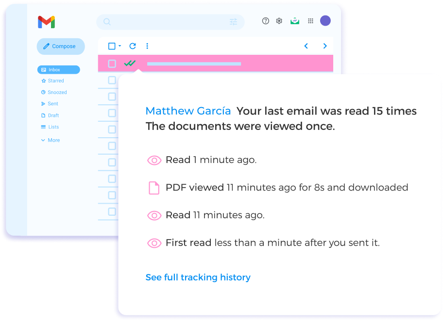 Don’t let unanswered emails fall through the cracks. Get notified if someone hasn’t opened your email or responded so you can quickly restart the conversation.