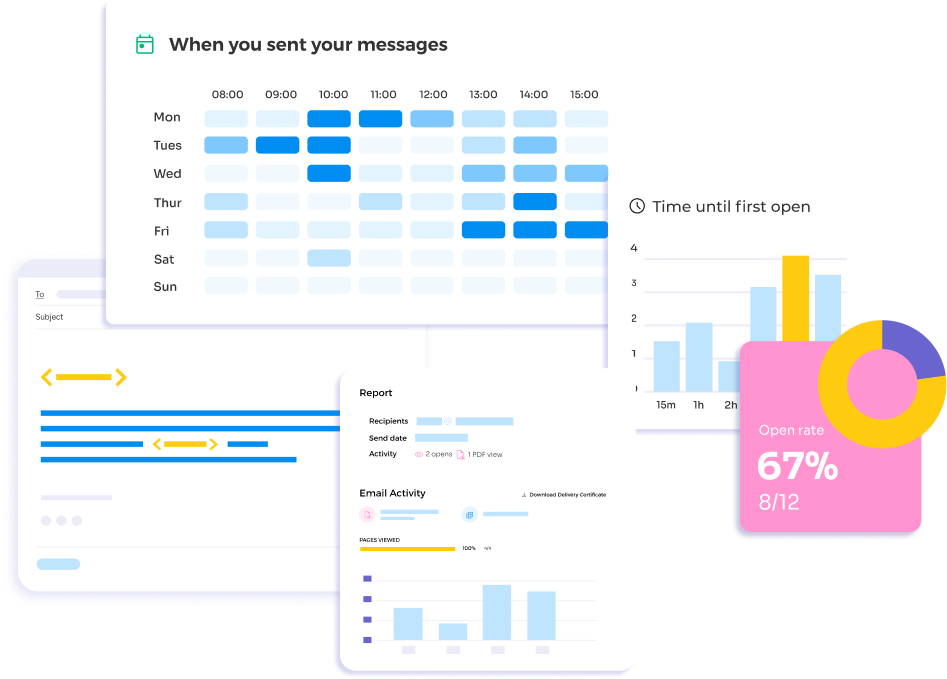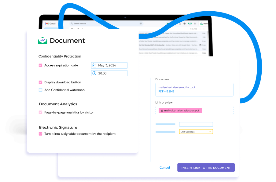 Track email opens, link clicks, and document downloads in real time. When you send sensitive documents for signature with Mailsuite, you can see who signed the document, when they signed it, where they signed it, and more.