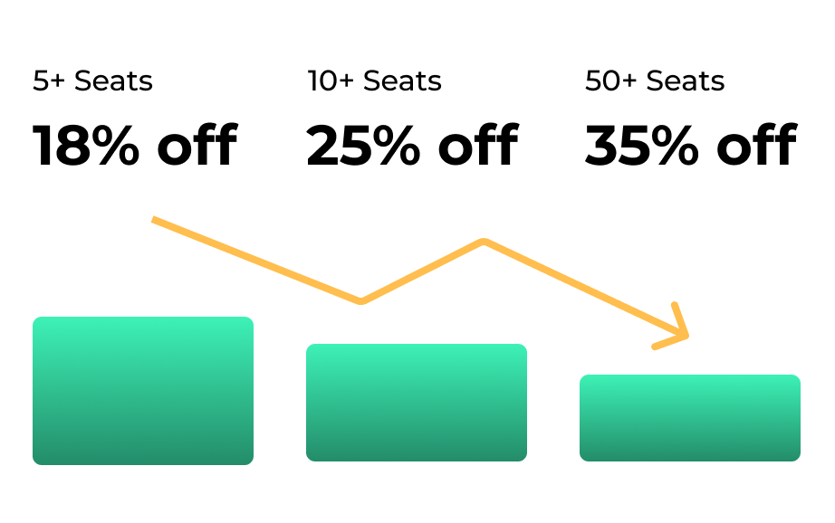 For 5 or more seats, you get 18% off. For 10 or more seats, you get 25% off. For 50 or more seats, you get 35% off