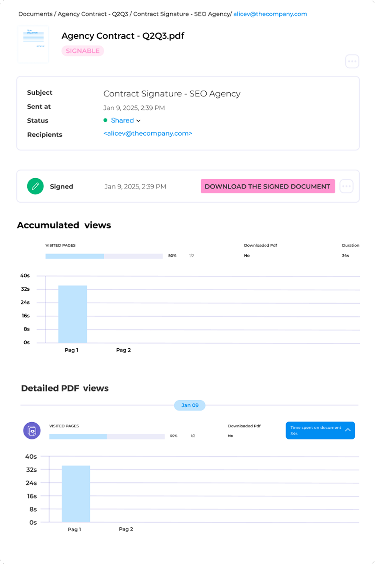 Gain detailed insights into how recipients interact with your documents. Understand which sections are viewed most and how much time is spent on each page, allowing you to assess interest levels and tailor your follow-up strategies effectively.
