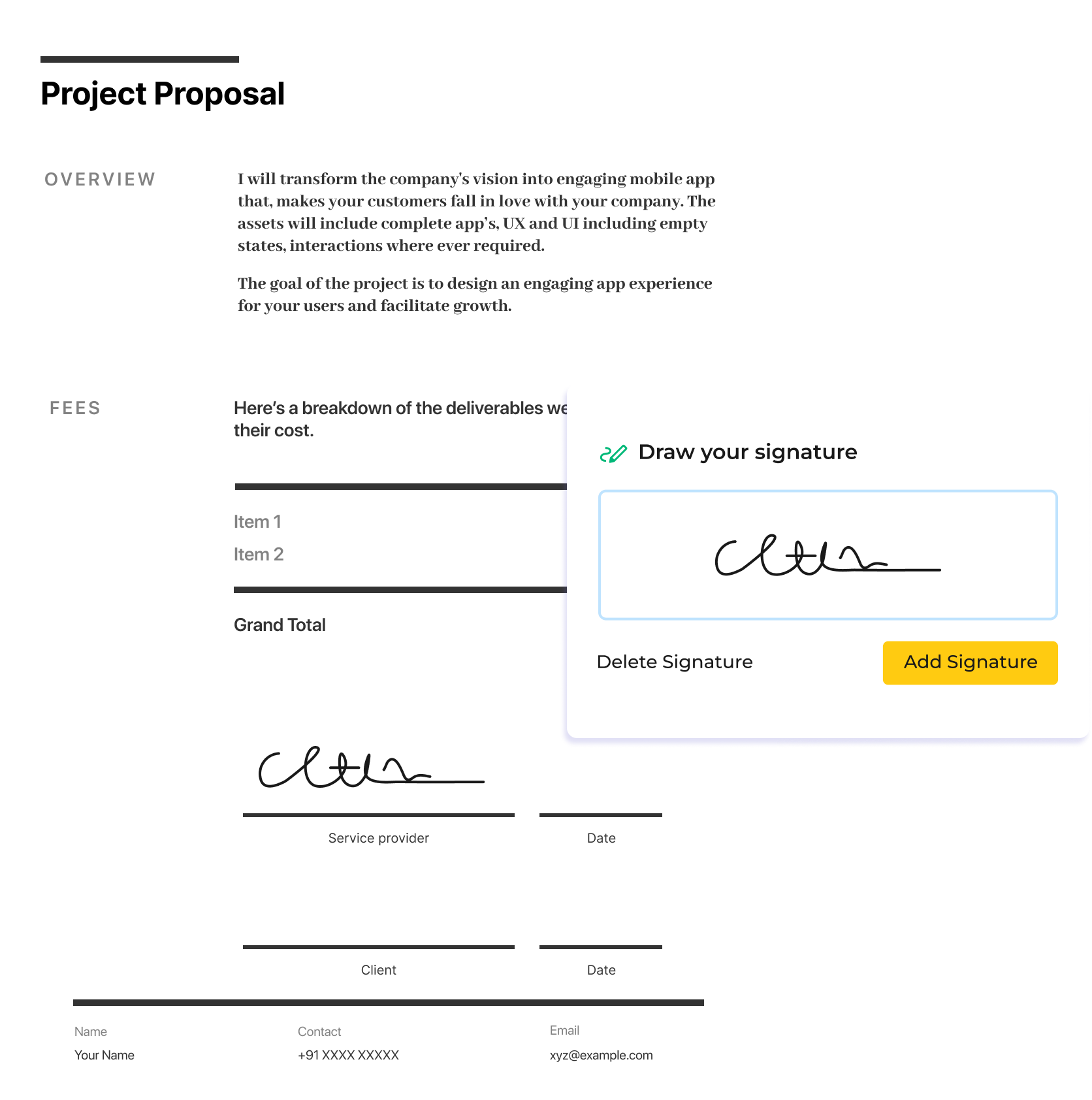 Simplify the signing process by adding eSignature fields directly to your proposals. Clients can sign without leaving their inbox. They receive a link to a guided, step-by-step signing process, with the signed document automatically delivered to all parties. Mailsuite eSignatures are legally binding and include a detailed audit trail for full transparency.