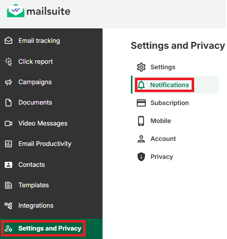 These reminders can help you keep conversations moving forward and can also serve as a reminder that you need to follow up on previous conversations. To enable any type of Mailsuite notification, visit your Mailsuite Dashboard and complete the following steps: