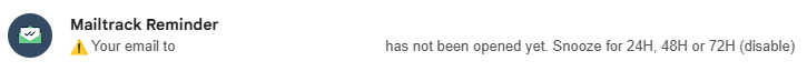 When you enable “not opened” reminders, Mailsuite will notify you when someone doesn't open an email you've sent them. You should receive a reminder email 24, 48, or 72 hours after sending a still-unread email. The reminder looks like this: