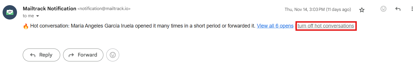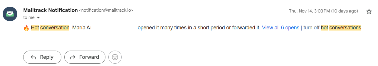 This is what a hot conversation alert looks like in your inbox: