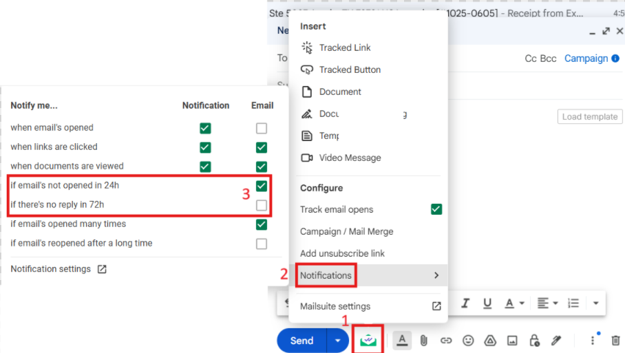 - From your Gmail inbox, send a tracked email with Mailsuite.