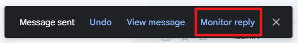 - After you send the email, a pop-up message will appear in the bottom left-hand side of your screen. Click Monitor Reply.