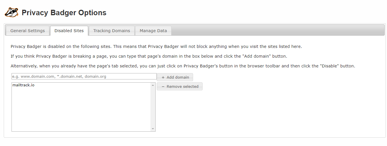 Is Mailtrack compatible with Privacy Badger? Yes, you can use Mailtrack and Privacy Badger at the same time, however, you would first need to add mailtrack.io to Privacy Badger's disabled sites list before attempting to send tracked emails.