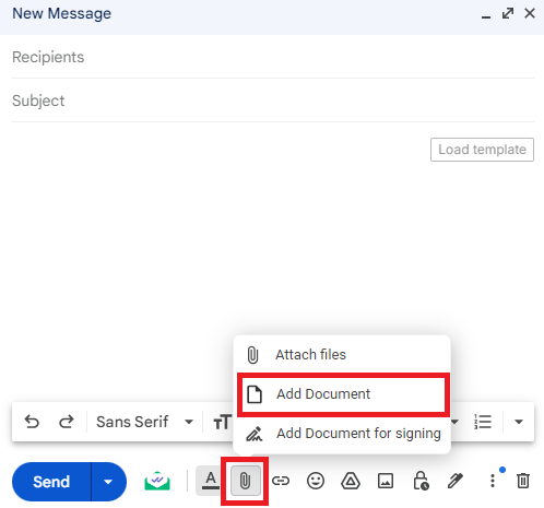 Alternatively, you can click the Attach file icon, then Add Document.