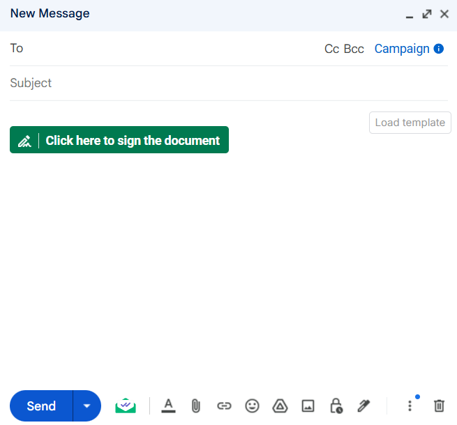 4. Then, a button will be added to the email draft that says Click here to sign the document. This will let the recipient access and sign the document.