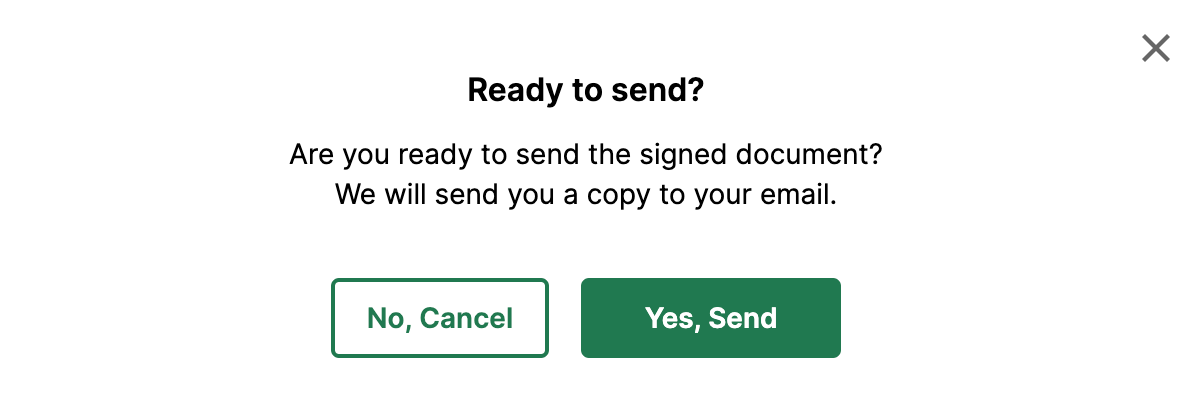 Once the PDF document has been signed, the recipient can automatically send it back to you by clicking Yes, Send.