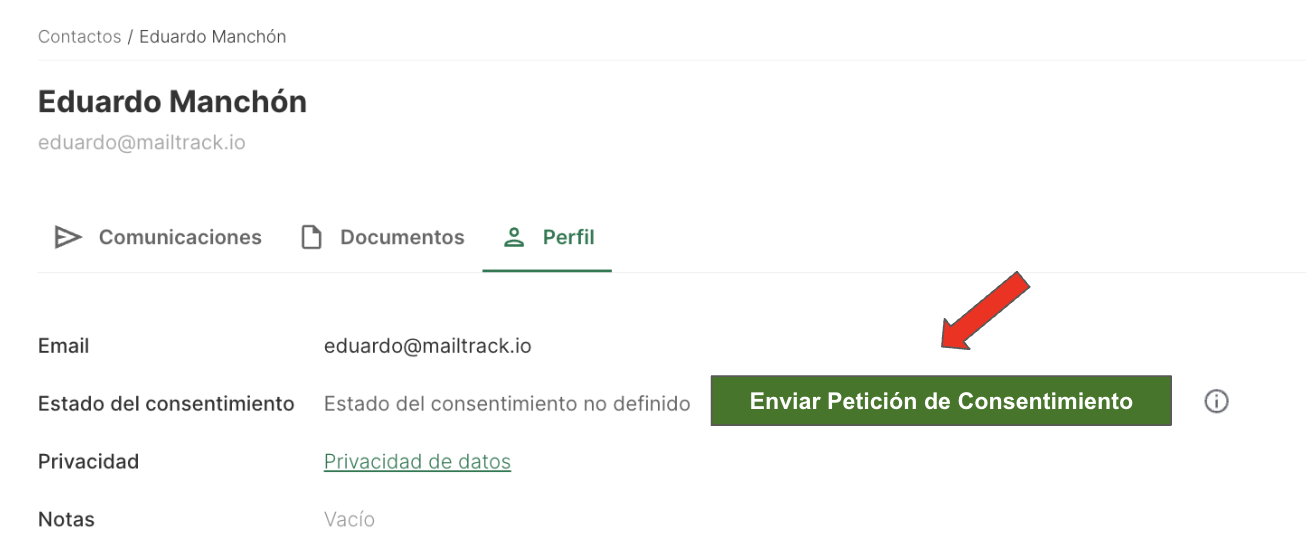 - Use el botón "Enviar Petición de Consentimiento" (ver imagen a continuación).